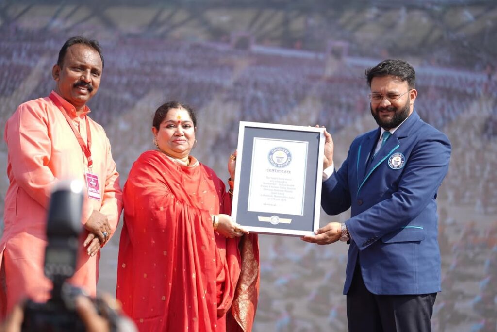 During the grand ceremony, the Guinness World Record medal and certificate were formally accepted on behalf of the women of Kalyan-Dombivli by Suhasi, representing the participants and their incredible accomplishment.